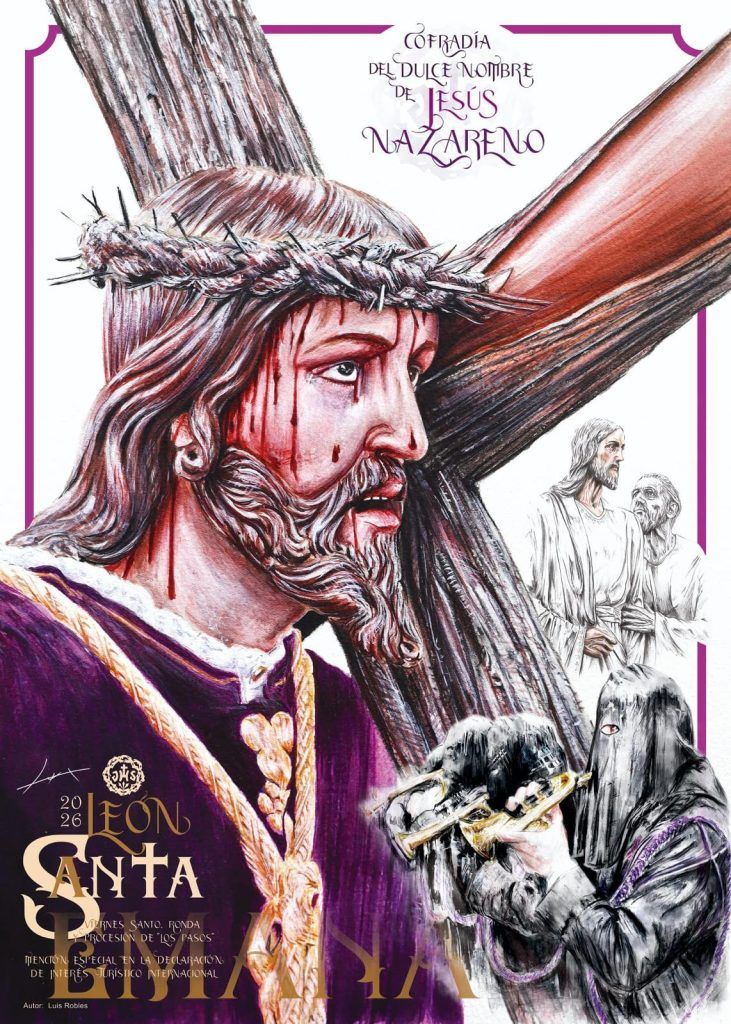 Este miércoles, 4 de febrero, se ha presentado el cartel de la Cofradía del Dulce Nombre de Jesús Nazareno para la Semana Santa 2026, una creación del artista leonés Luis Miguel Robles García.