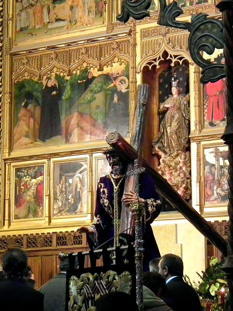 A lo largo de esa jornada sabatina, desde la diez de la mañana hasta las ocho de la tarde, la efigie del Nazareno se encuentra entronizada en una pequeña peana, mientras la Capilla permanece tenuemente iluminada, permitiendo a sus numerosos fieles mostrarle su afecto y devoción a través del cariñoso gesto de besar sus pies.