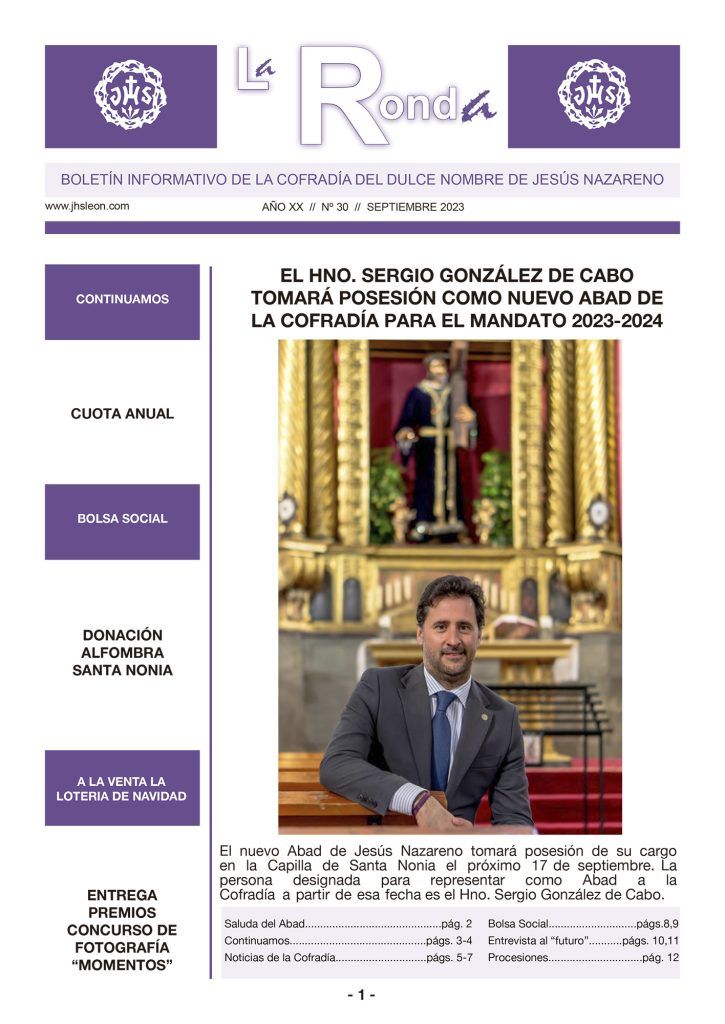 La edición 30 del Boletín informativo de la Cofradía, «La Ronda», ya se encuentra disponible para su descarga en el apartado de publicaciones de nuestra página web.