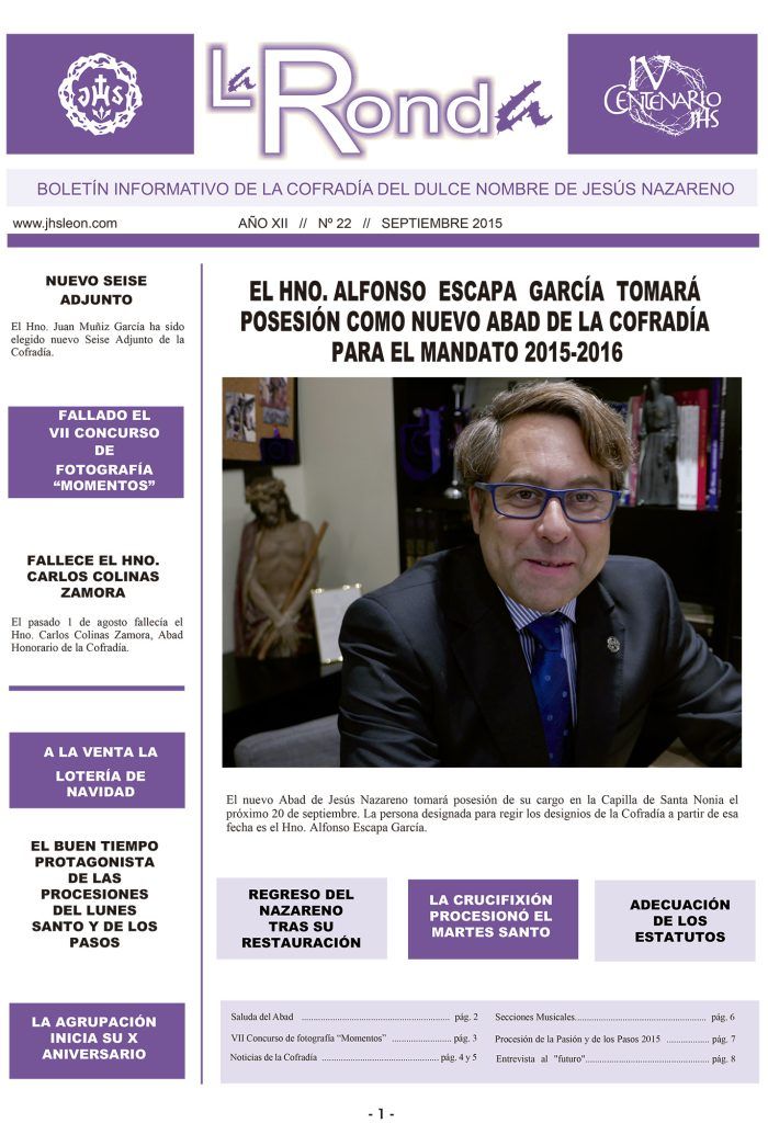 En este nuevo ejemplar se desarrollan diversas noticias de interés, sucedidas desde la pasada Cuaresma, como el fallo del Concurso Momentos, la disponibilidad de la Lotería de Navidad,.. así como una entrevista al futuro Abad de la Cofradía, Hno. Alfonso Escapa García.
