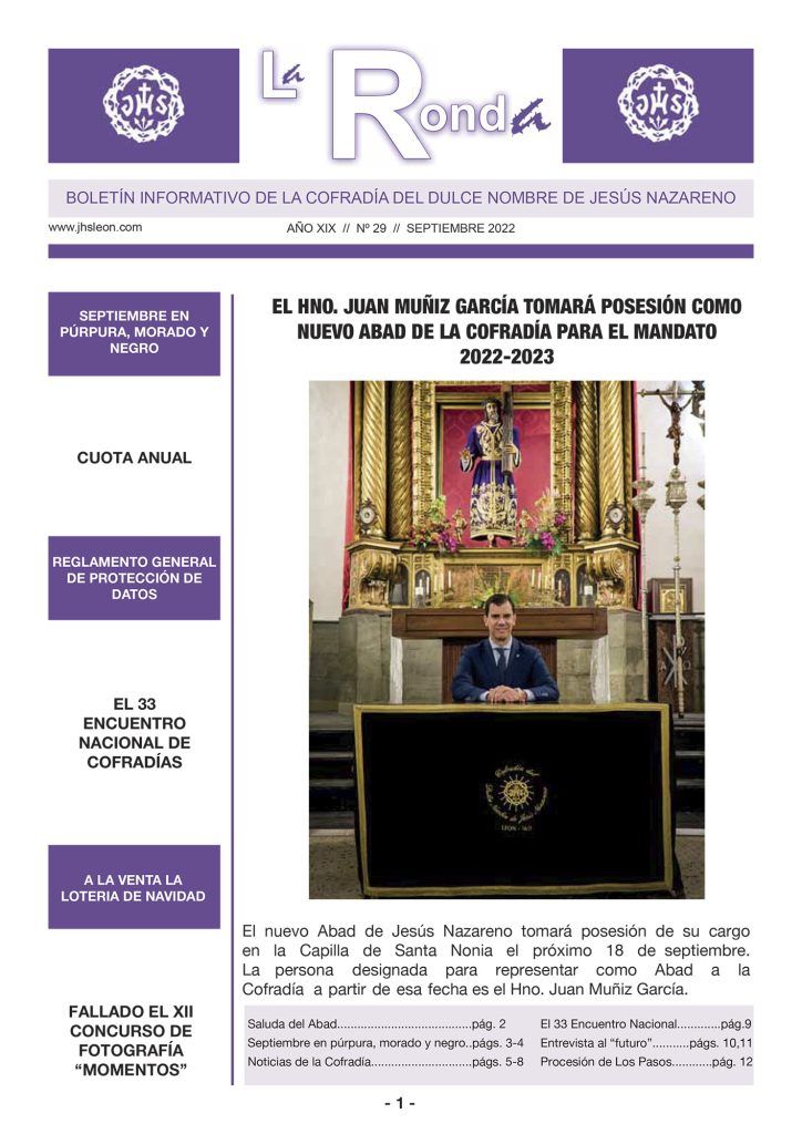 La edición 29 del Boletín informativo de la Cofradía, «La Ronda», ya se encuentra disponible para su descarga en el apartado de publicaciones de nuestra página web.
