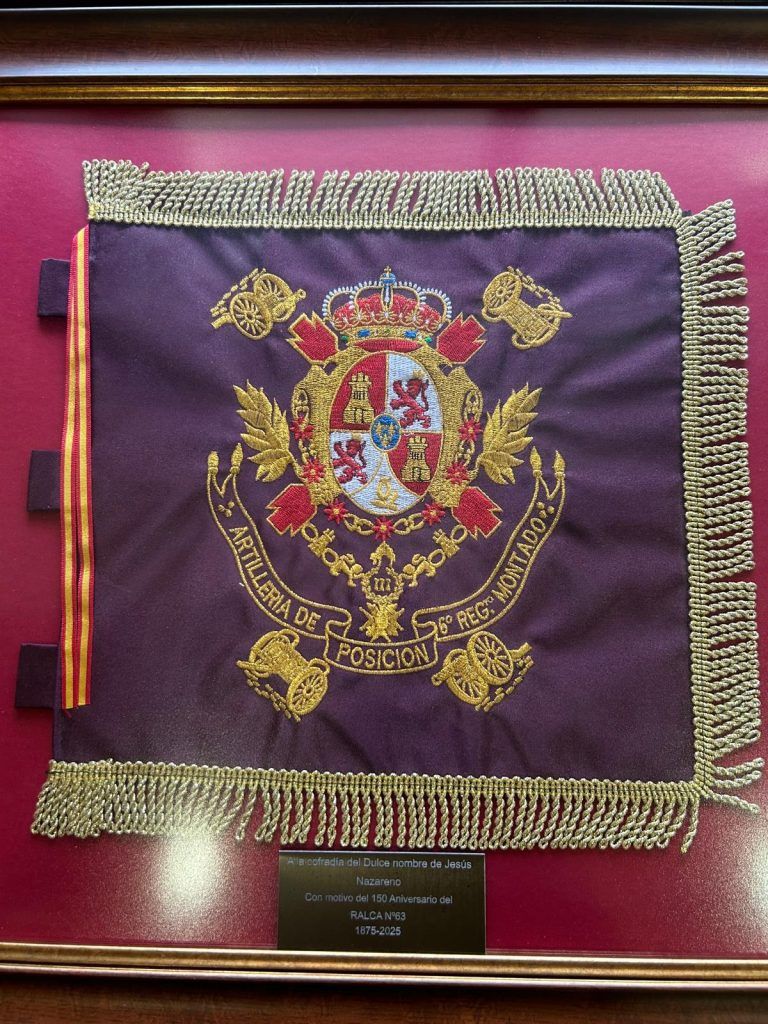 El Regimiento de Artillería Lanzacohetes de Campaña n.º 63 (RALCA 63), perteneciente al Mando de Artillería de Campaña del Ejército de Tierra, Hermano Mayor de la Cofradía y cuyos integrantes escoltan el paso de la Oración en el Huerto la mañana del Viernes Santo, ha inaugurado hoy una exposición con motivo del ciento cincuenta aniversario de su creación en la Casa de Carnicerías, en colaboración con nuestra Cofradía. La exposición recoge una cuidada selección de fotografías, uniformes, material histórico y diversos enseres que repasan las quince décadas de historia, trabajo y servicio del RALCA 63. Durante el acto de inauguración, representantes del Regimiento expresaron su agradecimiento a la Cofradía del Dulce Nombre de Jesús Nazareno por su generosidad y disposición para cederles el espacio, así como a todos los miembros del RALCA —presentes y pasados— que han contribuido al prestigio y compromiso de la unidad a lo largo de estos ciento cincuenta años. La exposición, con entrada gratuita, permanecerá abierta al público hasta el próximo 30 de octubre en horario de 10:00 a 14:00 y de 17:00 a 20:30 horas, ofreciendo a ciudadanos y visitantes la oportunidad de conocer más de cerca la historia y el espíritu de servicio del Regimiento de Artillería Lanzacohetes de Campaña n.º 63.