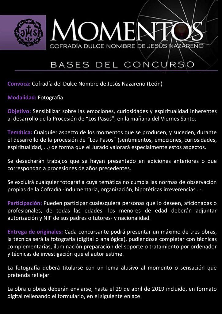 La Cofradía del Dulce Nombre de Jesús Nazareno convoca el undécimo Concurso de Fotografía «Momentos».